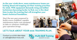 Multi-Skill Training Services, Inc. (MST) can enhance the performance of your industrial maintenance personnel by improving your maintenance employees’ technical skills through targeted training.